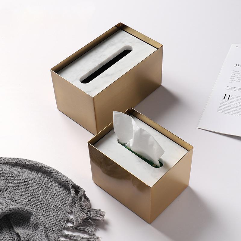 Brass Marble Metal Tissue Box For Hotel Coffee Shop Homestay Decoration Container Accessories Simple Paper Storage Box ZH267