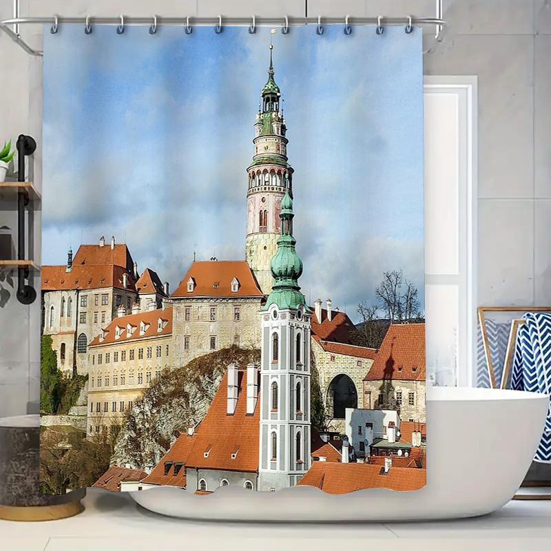 Vintage Castle Shower Curtain European Medieval Backdrop Bathroom Decor Tapestry Washable Artistic Home Textile Room Divider