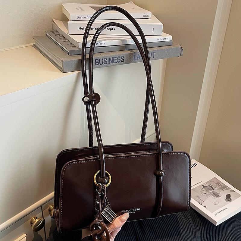 Autumn high-value niche underarm bag women's retro oil wax leather portable simple shoulder crossbody tote bag