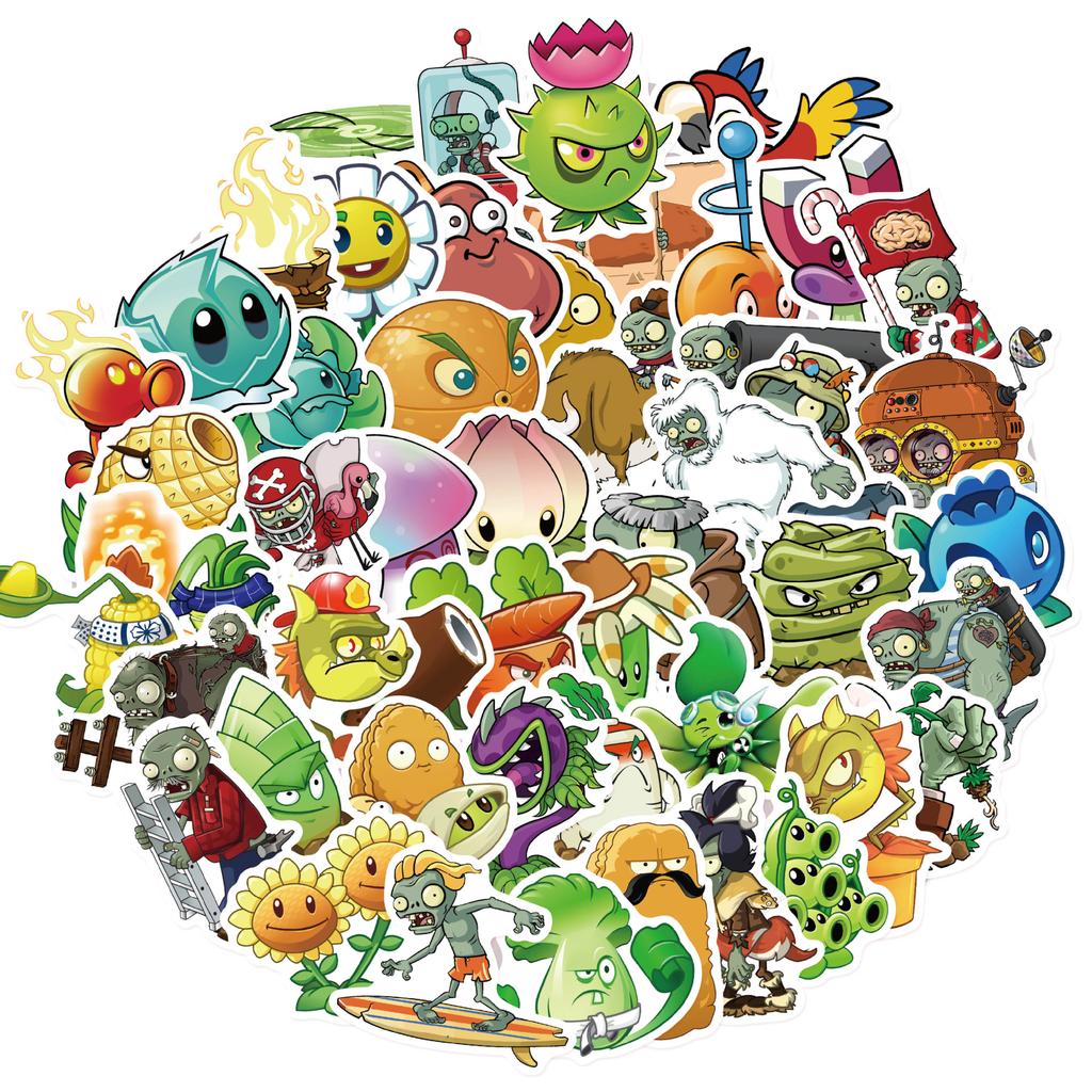 50Pcs Cartoon Cute Classic Game Plants Vs Zombies (PVZ) Water Bottle Storage Box Sticker Mobile Phone Case DIY Stickers