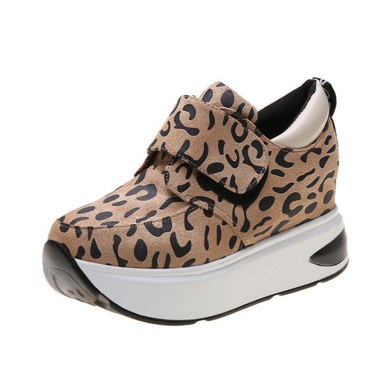 Women's Single Shoes Leopard Cross-border Women's Shoes Autumn and Winter Slope Heel Casual Shoes Korean Version Sexy Student Sneakers
