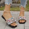 2025 Summer New Large Flat Square Rhinestone Slippers Women's Beach Sandals