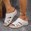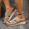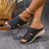 Women’s T-Strap Wedge Sandals, Thick Sole with Stitching and Hollow Design, Summer Casual Slip-Ons, Wide Size