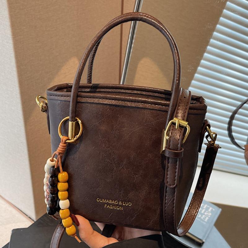 Casual retro small bag women's new fashion messenger bag commuter shoulder high value bucket bag