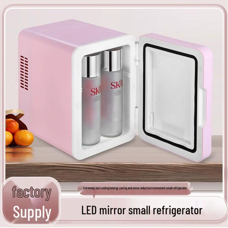 4L Mini Car Fridge with Mirror and Light Strip – Ideal for Makeup, Skincare, Drinks, Heating & Cooling