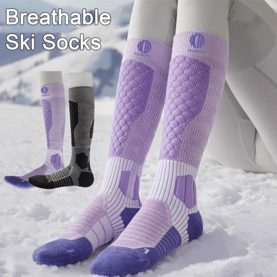 Experience ultimate comfort and performance with these ski socks, crafted from super soft, stretchy fabric that ensures a perfect fit. The absorbent material quickly wicks away sweat, enhancing breathability and keeping your feet dry and fresh during intense activities. Featuring anti-odor properties, these socks maintain freshness even after prolonged use.