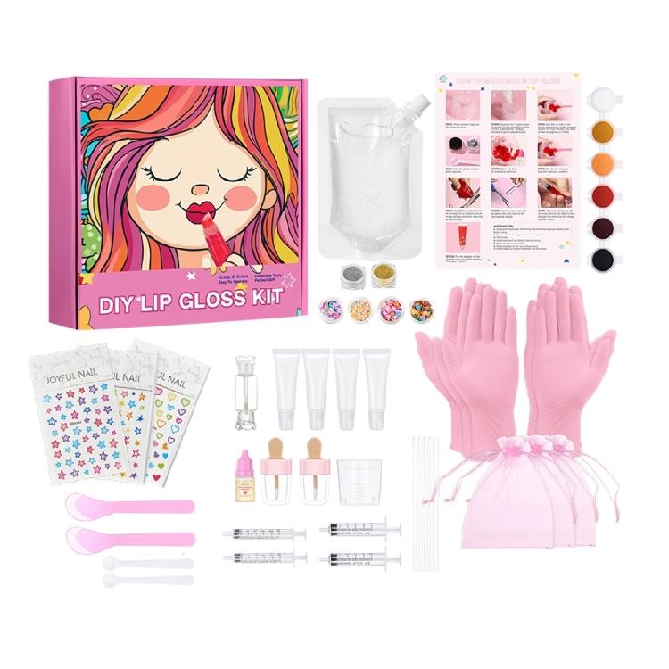 Handcraft Lip Gloss Kits Set with Accessories for Girl and Tweens Moisturizing Glitters Lip Kits for Creative Project