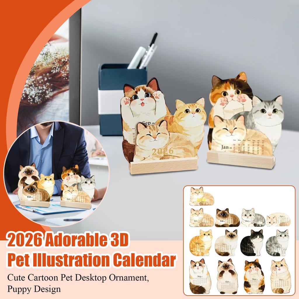 2026 Adorable 3D Pet Illustration Calendar, Cute Cartoon Pet Desktop Ornament