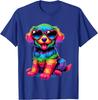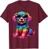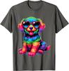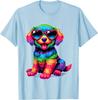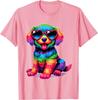 Rainbow Furry Dog With Heart Sunglasses Graphic Print Cotton T-Shirt Casual Trip Wear