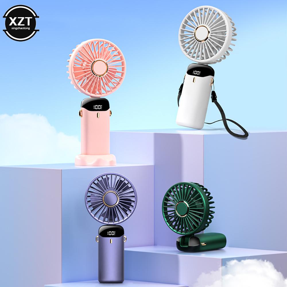 Hand-Held Fan LED Display USB Hanging Neck Portable Small Electric Fans Home Office Desktop Folding Summer Air Cooling Fan 1PC