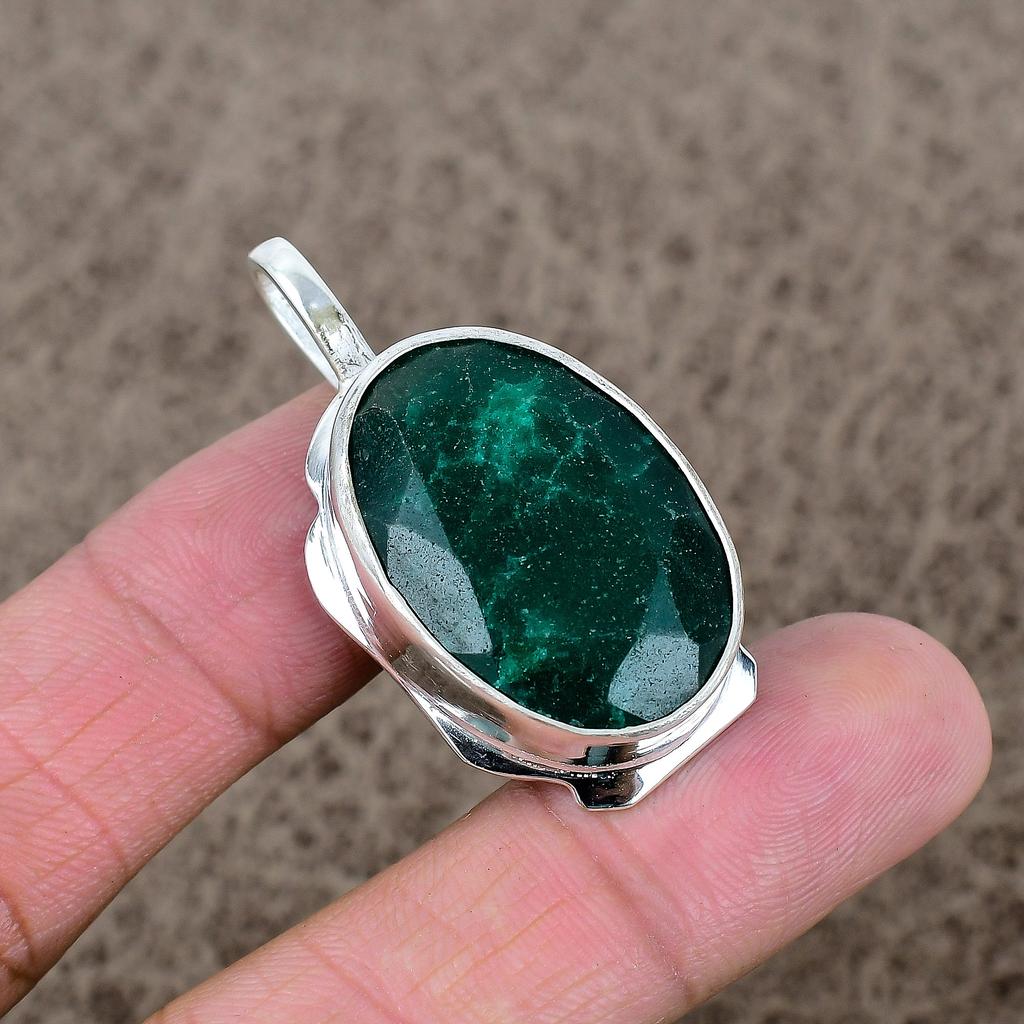 Green Jade Gemstone Handmade 925 Sterling Silver Jewelry Pendant 1.81" KKG-373