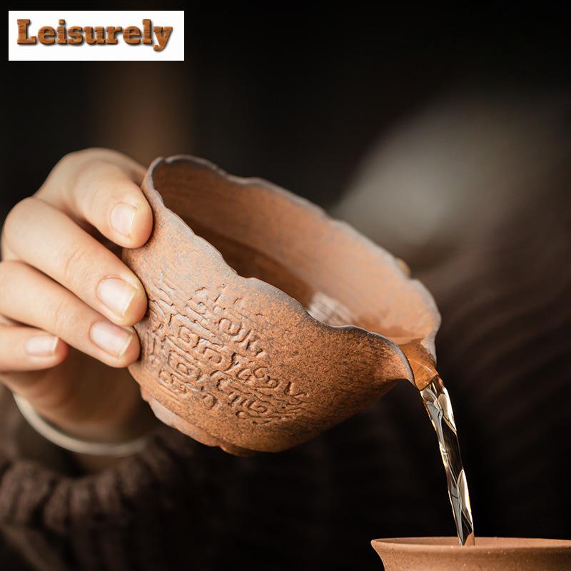 Chinese Old Mud Clay Coarse Pottery Tea Pitcher Tea Divider Cha Hai Dispenser Justice Cup Fair Mug Teaware Decoration Supplies