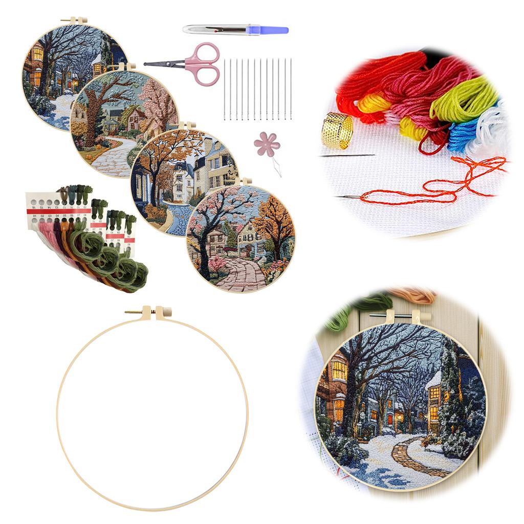 4 Pack Embroidery Starter Kit with Embroidery Hoop Needles Threads Instruction Stamped Cross Stitch Kits with Pattern for Adults