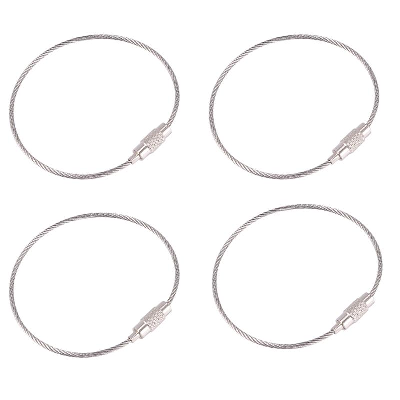Good-4Pcs Stainless Steel Screw Locking Wire Keychain Cable Key Rings Outdoor Accessory