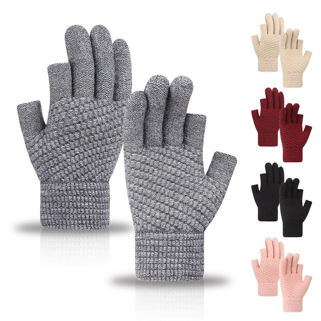 iwarm love warm dew two-finger office writing gloves men and women winter two half-finger knitted imitation cashmere student gloves