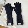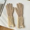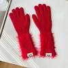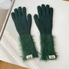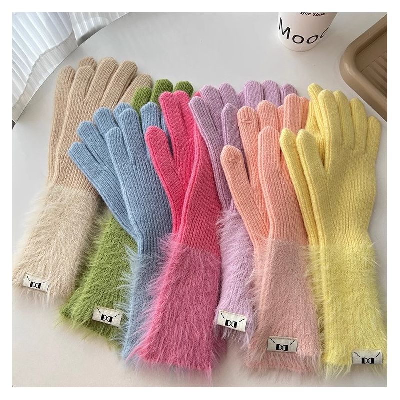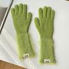 Autumn and winter dopamine solid color warm five-finger gloves versatile knitted cute student girl sweet long cycling sleeves