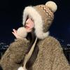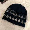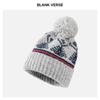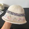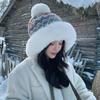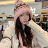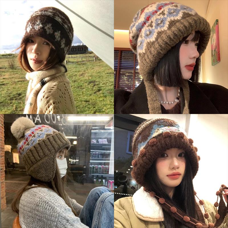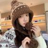 Fair Island contrasting color knitted wool hat women's season versatile big head circumference showing face small ear protection warm pullover hat