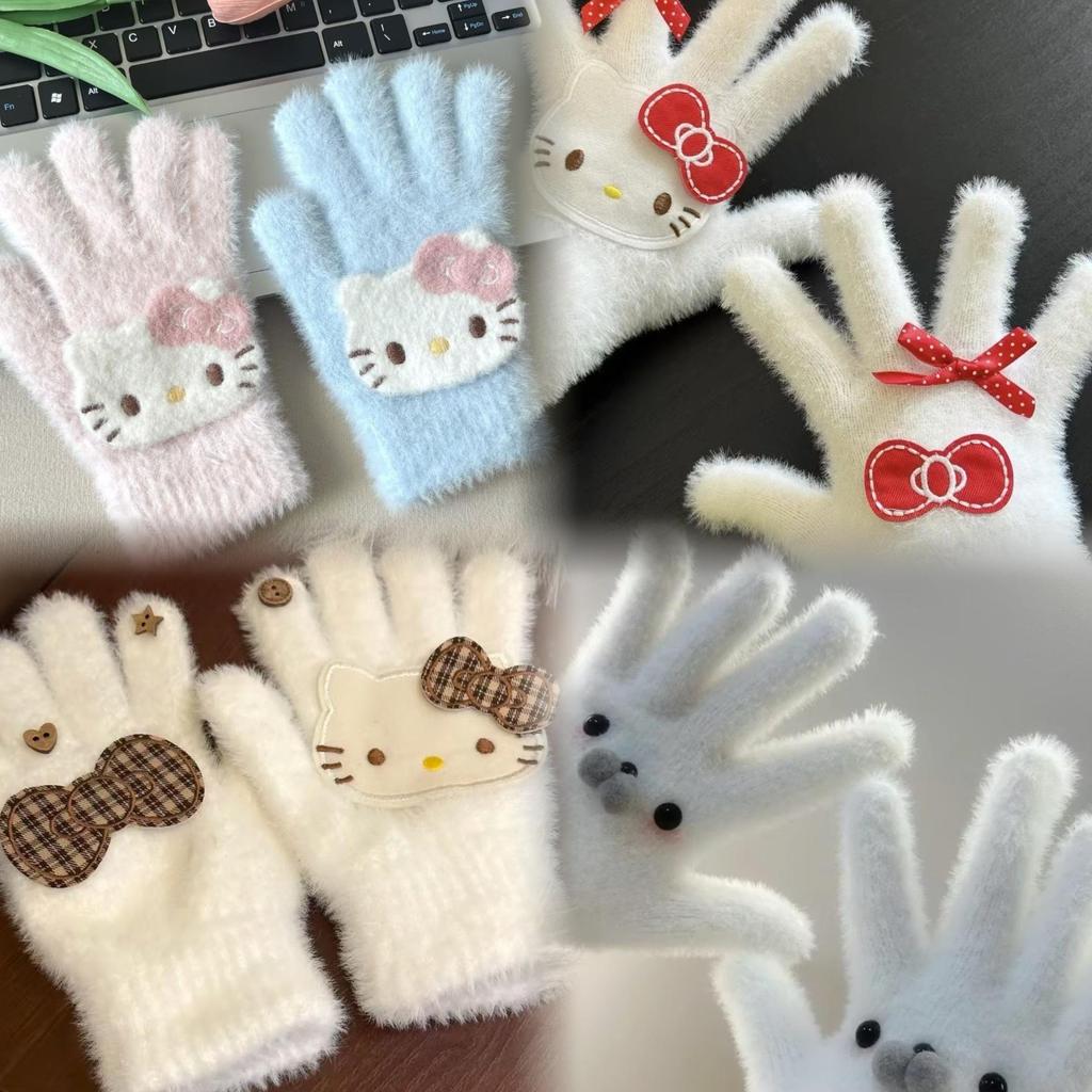 Women's Winter 2025 Retro Plaid Kitty Gloves: Warm Five-Finger Cycling Cold Protection