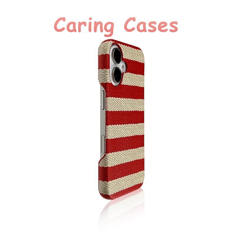 For iPhone 17 Pro Max Case Red Stripe Cloth-Texture Slim Minimalist Protective Cover Compatible with iPhone 16 15 14 13 12 11