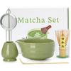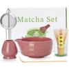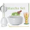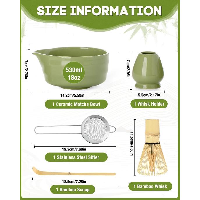Matcha Whisk Set - 5PCS Matcha Set Includes 17OZ Chawan with Spout, Bamboo Chasen Whisk with Ceramic Holder, Mat cha Scoop and Stainless Sifter,