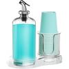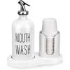 Mouthwash Dispenser for Bathroom with Cup Holder Detachable Glass Mouthwash Container 16 Oz,Refillable Mouth Washer Dispenser for Countertop