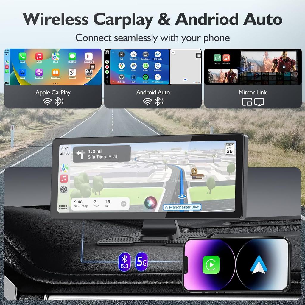 🚗【10" Touch Screen & Real-Time GPS Navigation】Enjoy a crystal-clear 10-inch 4K IPS apple carplay touch screen with a 178° wide viewing angle—easy to see from any seat,even in sunlight. Stay focused with Apple CarPlay & Android Auto support for hands-free real-time GPS navigation, voice guidance, and real-time traffic updates. Drive smarter, stay connected, and stay focused on the road ahead.