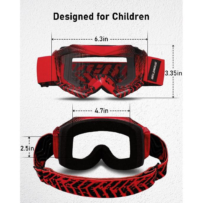 BELINOUS Kid Riding Goggles for ATV Dirt Bike Motorcycle Motorcross MX, Youth Dirt Bike Goggles for Kids 3-12 with Soft Strap