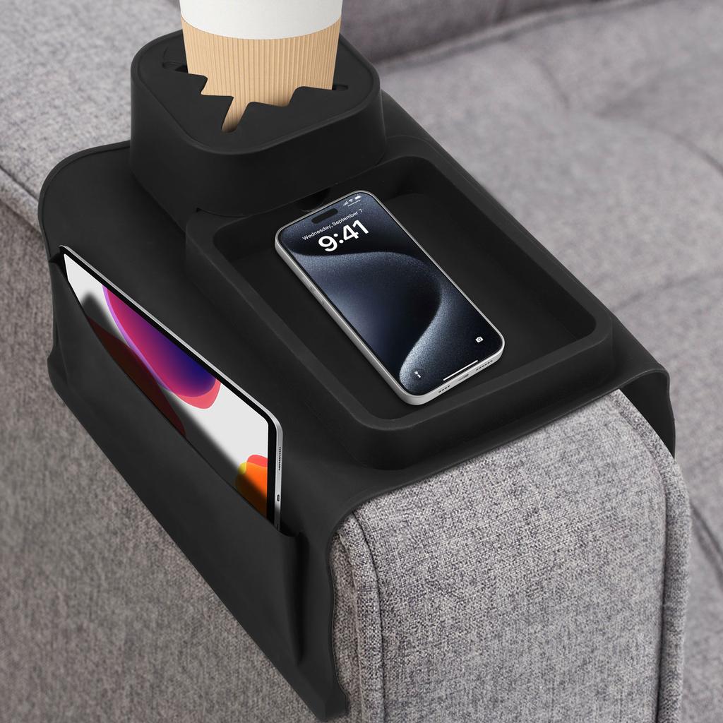Couch Cup Holder - Anti-Slip Sofa Armrest Tray with Dual Side Pockets - Silicone Anti-Spill Sofa Drink Holder Couch Arm Tray
