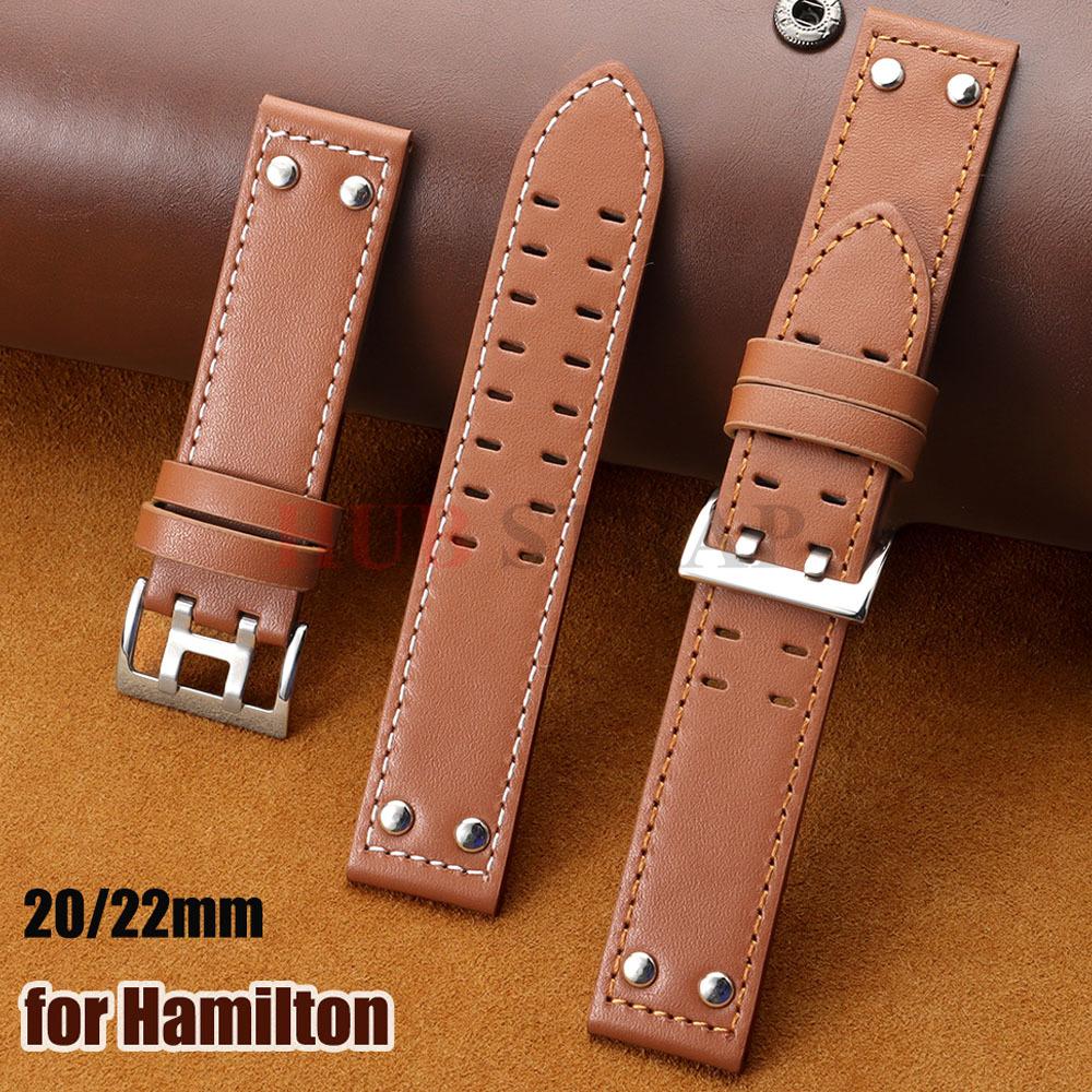 20 22mm Genuine Leather Watch Strap for Hamilton Khaki Aviation Field Navy H70595593 H77616533 Business Watchband Men Wristband