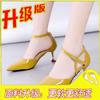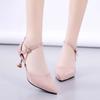 Korean version 2025 summer new pointed patent leather thin heel high heel sandals middle heel bag head one-word buckle sexy and thin women's shoes