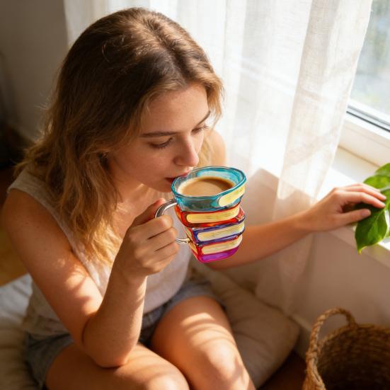 Ergonomic and Versatile Design: Thoughtfully shaped to fit comfortably in your hand, the hand-painted glass cup's curved body ensures a secure grip while the stable book-shaped base prevents tipping. With a well-balanced capacity perfect for coffee, tea, or other beverages, it also doubles as a creative accessory—ideal for holding pens, small plants, or decorative items around your home or office.