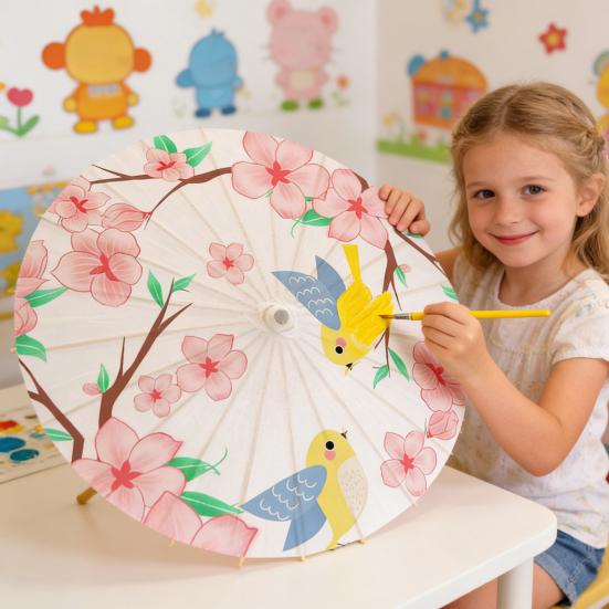 Fotoğraf aksesuarları veya benzersiz parti hediyeleri olarak ideal olan bu şemsiyeler, yaratıcı sanat projeleri için akrilik boyalar, sulu boyalar, keçeli kalemler, payetler, tüyler veya altın tozu ile de kişiselleştirilebilir.. Not: Kağıt yüzeyine zarar vermemek için kurşun kalem kullanmaktan kaçının.