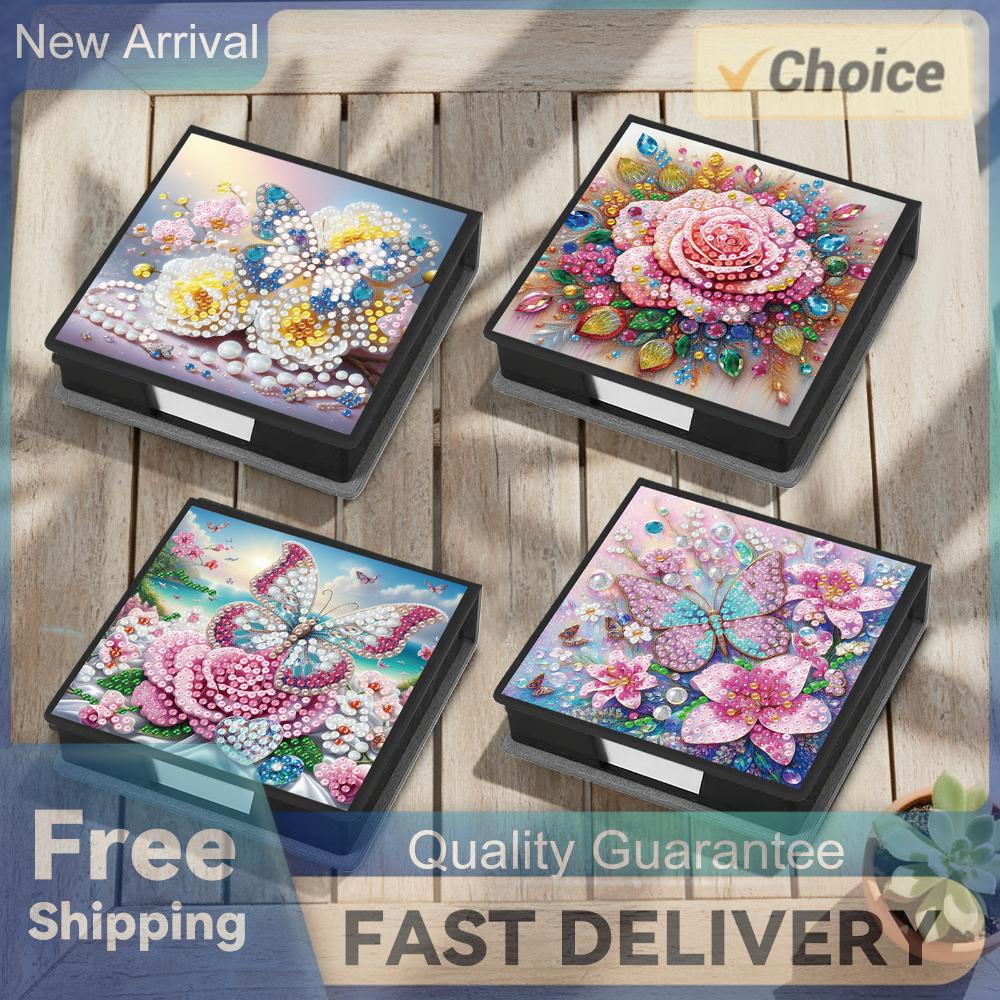 4Pcs DIY Rhinestones PU Memo Paper Storage Box with 160 Sheets Paper Diamond Art Sticky Note Holder Gem Art Sticky Note Case
