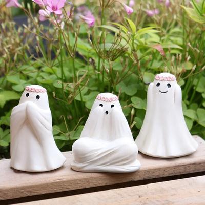 3pcs Garden Atmosphere Decoration Resin Halloween Ghost Decor Set Cute Funny Ghost Figurine Cartoon Ghost Art Sculpture Desk