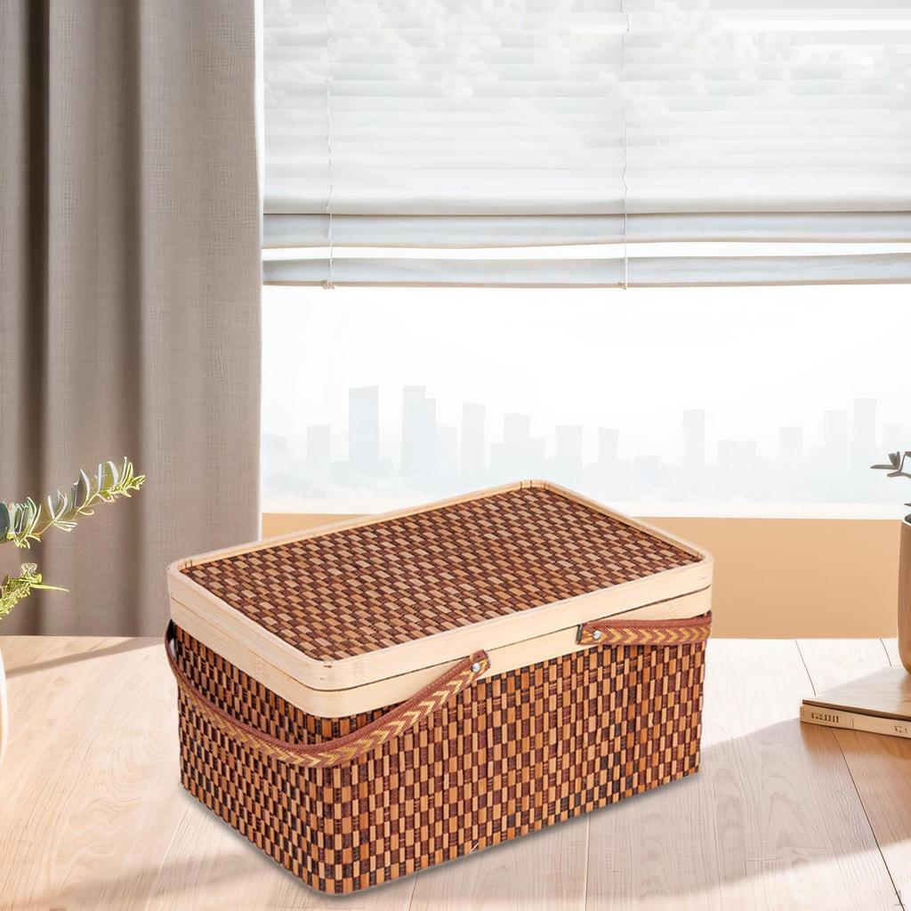 - 【Features】 Woven storage basket with lid and handle for picnic, which is convenient to use
