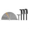 Style A: 1 Straight Feeler Gauge, 1 Angled Feeler Gauge, 1 Square hole tool, 1 hexagonal hole tool