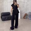 Embrace the essence of sporty elegance with this Women's Autumn Fashion Two-Piece Set. Crafted from high-quality polyester, this set offers both comfort and style for the modern woman. It features a sleeveless top with a turn-down collar that adds a touch of sophistication. Paired with high-waist bottoms, this solid-color ensemble is perfect for a seamless transition from casual to chic. Ideal for those seeking a sleek and versatile look, this set is a must-have addition to your autumn wardrobe.