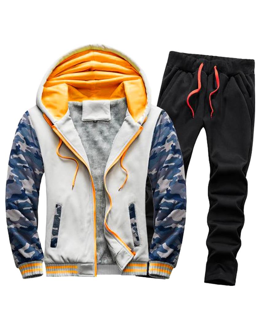 three Joy Men's Fleece-Lined Sweatshirt and Hoodie Set, Long Sleeves, Light Gray, Size L