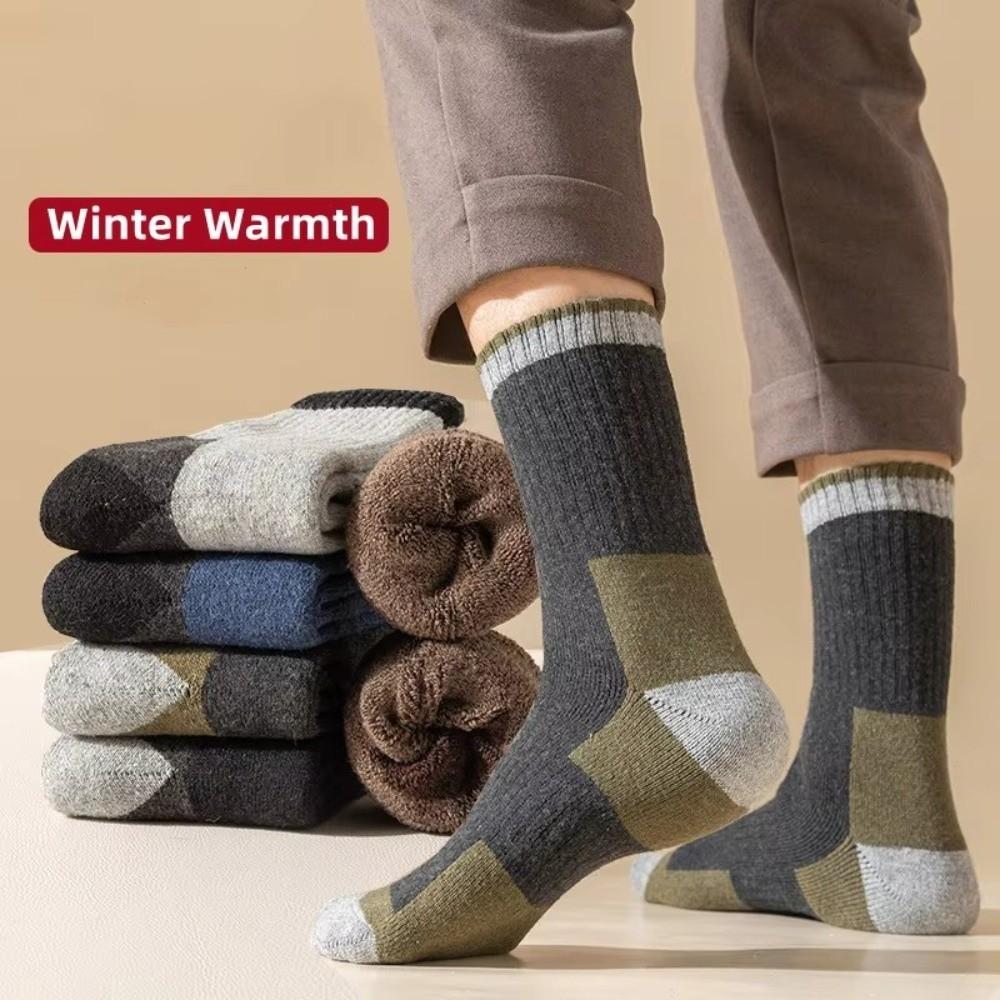 Casual Comfortable Men's Thick Wool Socks Soft Warm Colorblock Sports Socks Breathable Moisture-Wicking Mid-calf Socks