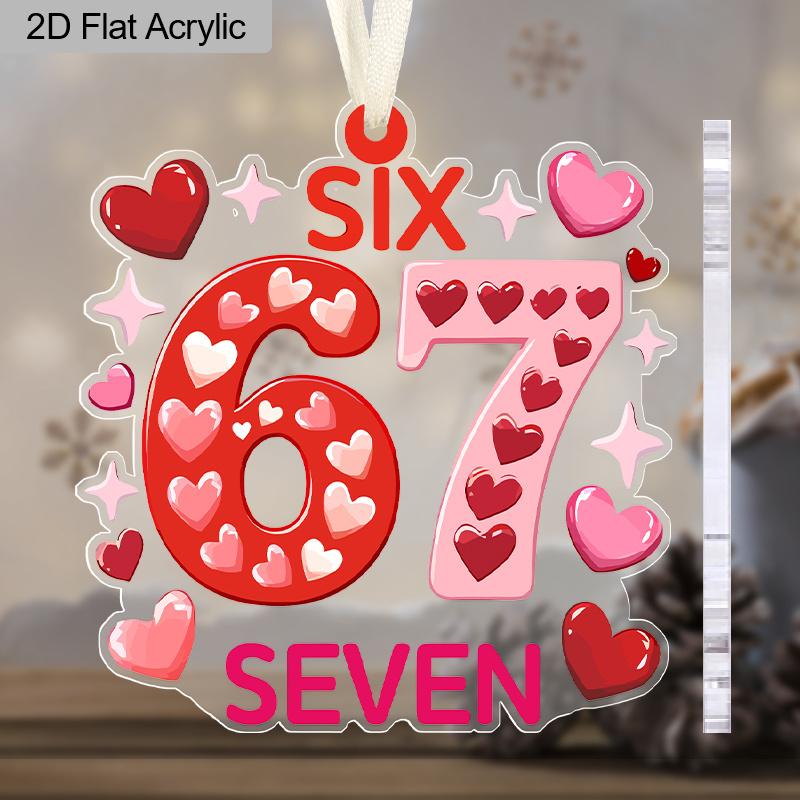 Happy Valentine's Day, 67 Six Seven Sign, Pink Love Heart Pattern, Acrylic Pendant, Party Holiday Decor, Home Decor, Window Pendant Decor, Decor Sign