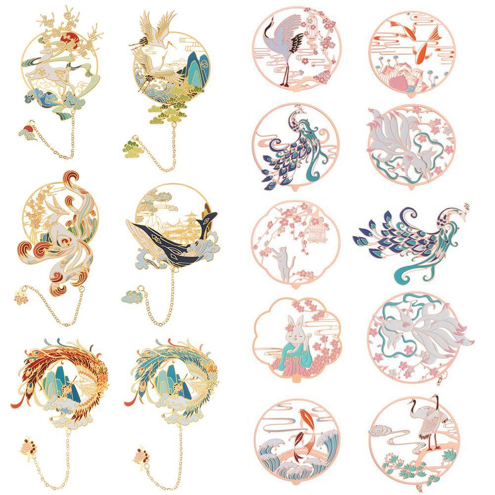 Chinese Style Brass Peacock Bookmark Group Fan Book Clip Pagination Mark Metal Tassel Stationery School Office Supplies