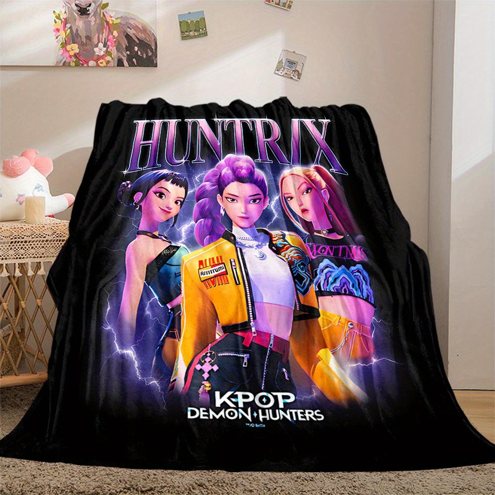 1Pc HUNTR/X KPOP Print Flannel Blanket, Comfortable for All Seasons, Home Decor, Warmth and Comfort, Perfect for Christmas Gifts821091