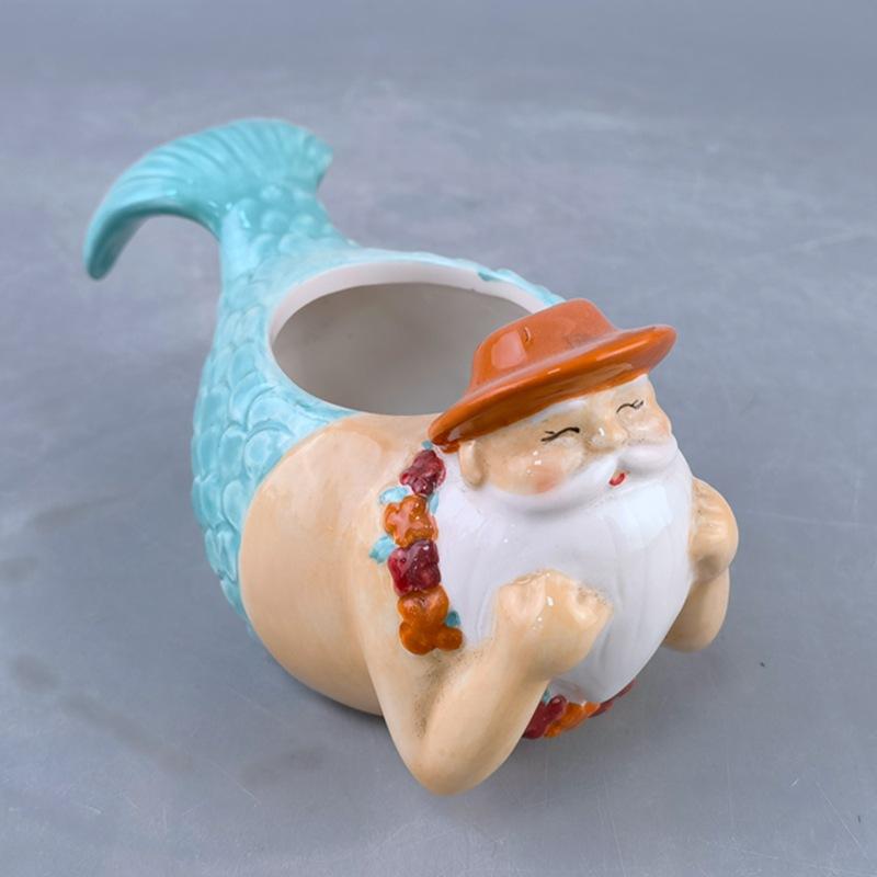 Creative mermaid ceramic succulent flower pot animal model cute bear elephant desktop mermaid potted plant ornament