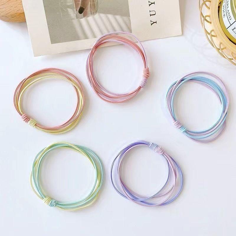 The new color matching four-strand rubber band net celebrity small fresh forest female Korean headdress girls tie hair accessories hair ring