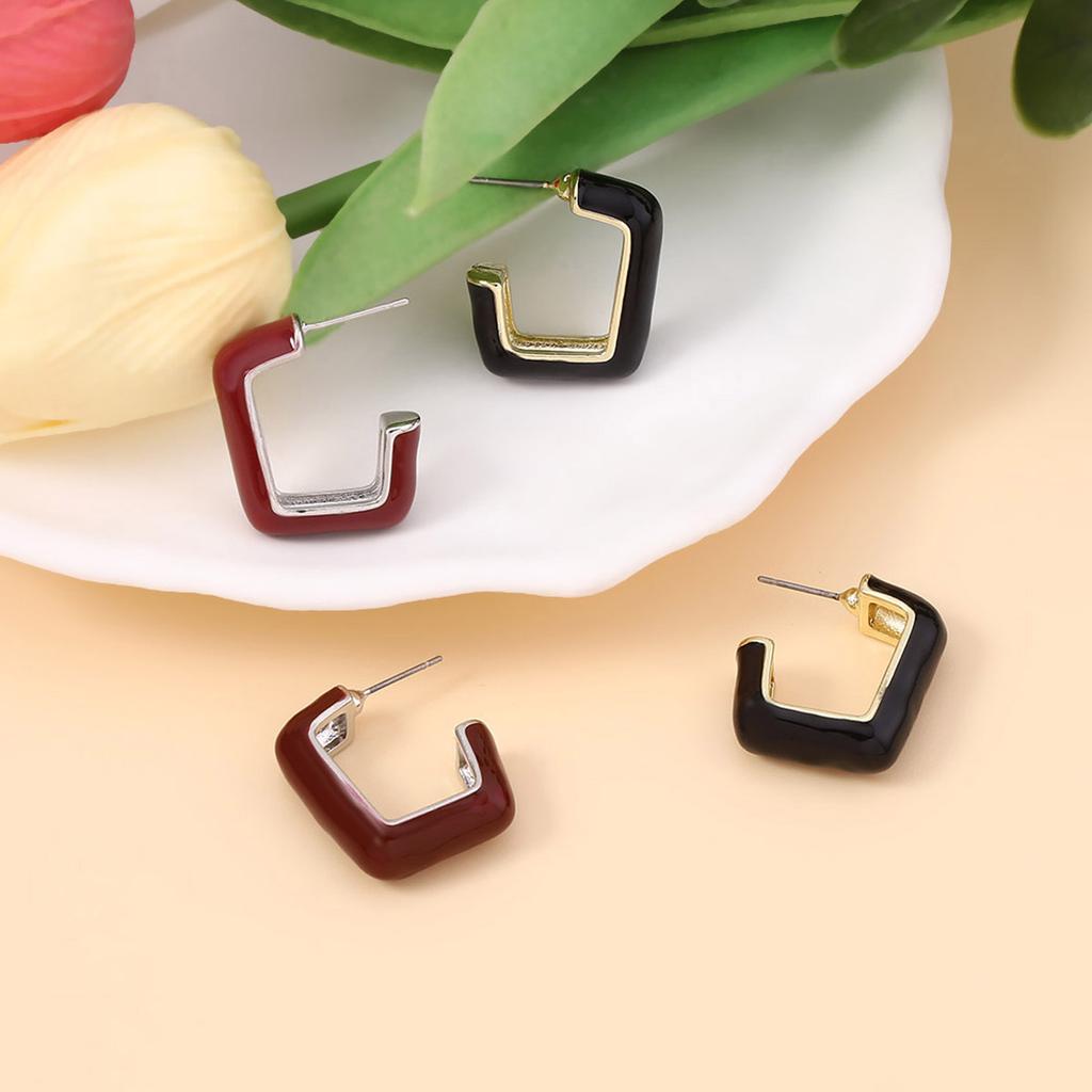 Hong Kong style retro geometric double C fashion circle square minimalist stud earrings, simple and versatile temperament girls earrings