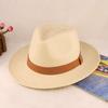 High-End Panama Straw Hat Striped Bow Flat Edge Jazz Grass Top Hat Fine Hand-Woven