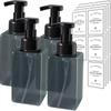 Foaming Soap Dispenser, 4 Pack Refillable Foam Soap Dispenser (Dark Grey) with 20 Pcs Waterproof Labels, Plastic Hand Soap Dispenser Pump Bottle