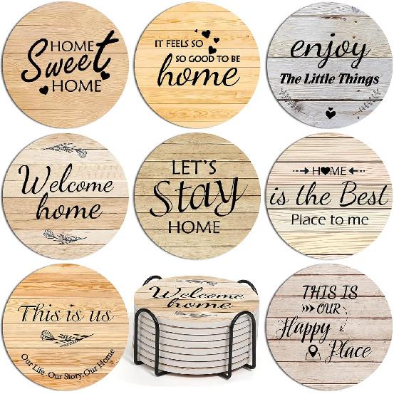 Billbotk Farmhouse Coasters Set of 8, Ceramic Drink Coaster for Coffee Table Decor, Funny House Warming Gifts for New Home, 4 Inches