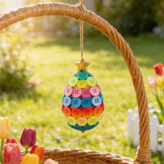 Thoughtful Handmade Gift Option: These delightful button crafts make meaningful presents for teachers, neighbors, or friends, conveying warmth and holiday cheer. Each ornaments handcrafted nature adds sentimental value, making it an ideal keepsake that recipients will treasure throughout the Easter season and beyond.