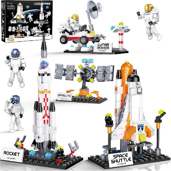 EASY TO FOLLOW & BUILD: This 415-piece fun building toy for boys, girls, and kids ages 6 and up includes everything kids need to build a space shuttle set, rocket kit, space satellite, lunar rover, 4 mini astronaut figures. It is made of high-quality durable ABS plastic. Repeatable assembly ensures long hours of play. The instruction manual has clear instructions and colorful graphics clearly show how to assemble, allowing children to follow the clear building steps more effectively.